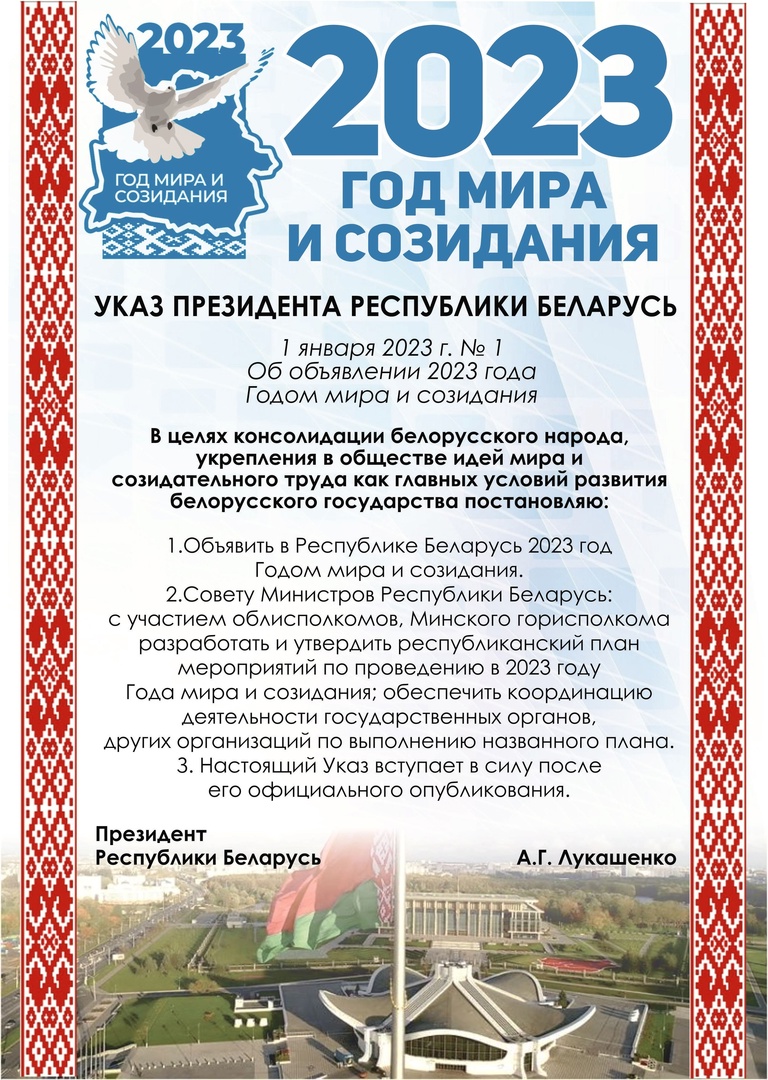 Президент Республики Беларусь Александр Григорьевич Лукашенко объявил 2023-й Годом мира и созидания