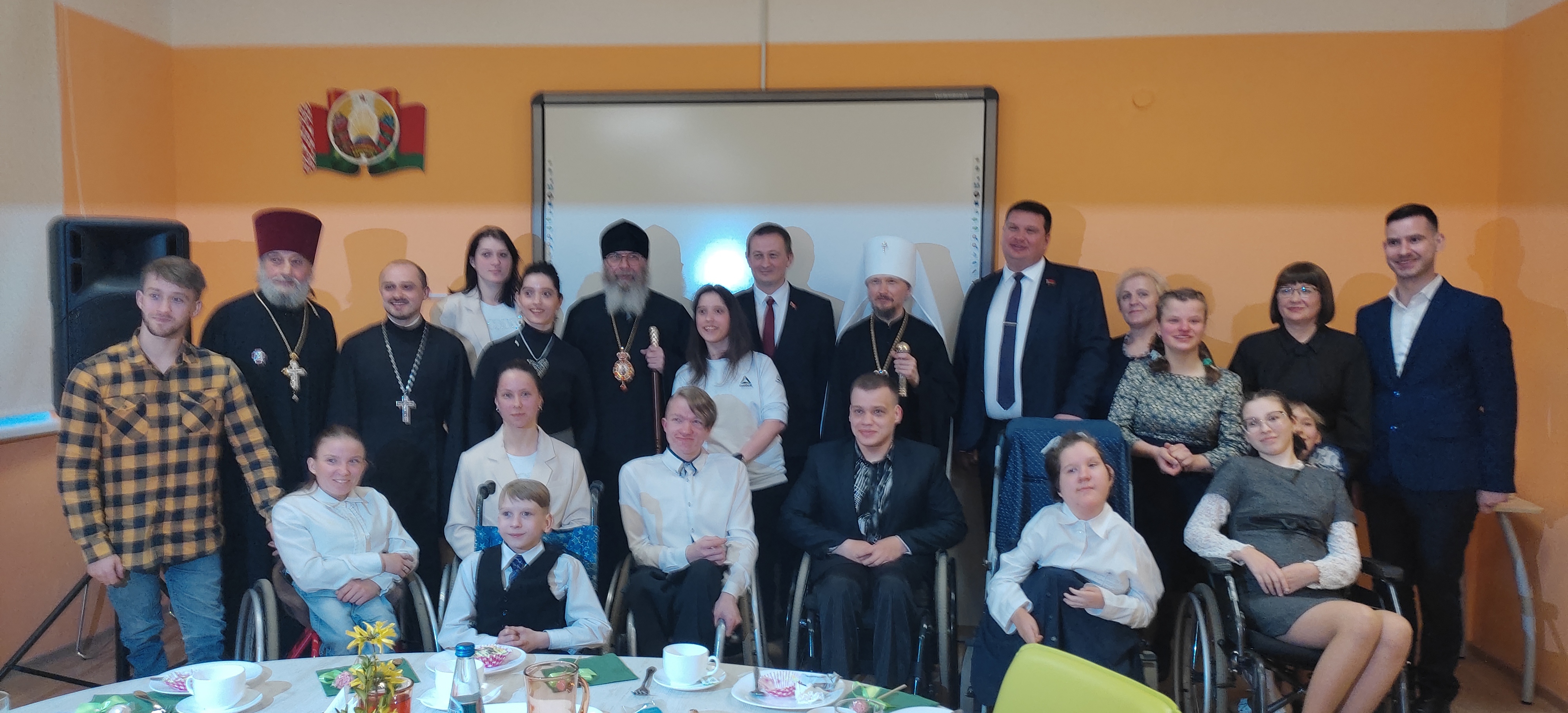 Благотворительная акция «Подари радость ближнему» проходит на этой неделе во всех регионах Минщины. И государственное учреждение «Ивенецкий дом-интернат для детей-инвалидов с особенностями физического развития» не стало исключением, его посетили председатель Минского облисполкома Александр Турчин и Митрополит Минский и Заславский Вениамин, Патриарший Экзарх всея Беларуси. Гости ознакомились с условиями проживания ребят, посетили занятия в трудовых мастерских, библиотеку, сувенирную лавку и молитвенную комнату, далее экскурсия плавно перетекла в общение с проживающими дома-интерната и бывшими воспитанниками, которые приехали на встречу с губернатором и Митрополитом Минским и Заславским Вениамином. Беседа за чашкой чая получилась по-настоящему дружеской и душевной.